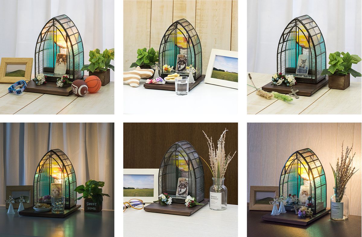 この「ペットのためのにじ色礼拝堂」は、今ひととき離ればなれになったペットに「大好きだよ、一緒にいてくれてありがとう」そんな優しいお祈りをするあなたのそばにおいてください。